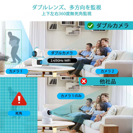 【プロもオススメ!】見守りカメラ ベビーカメラ ベビーモニター 双方向音声通話 アプリ通知機能 Wレンズ 顔検知 赤ちゃん ペット お子様 介護 留守番 家庭用 店舗用 高画質 防犯カメラ 取付簡単 日本語アプリ 屋内カメラ 監視カメラ 送料無料 防犯対策